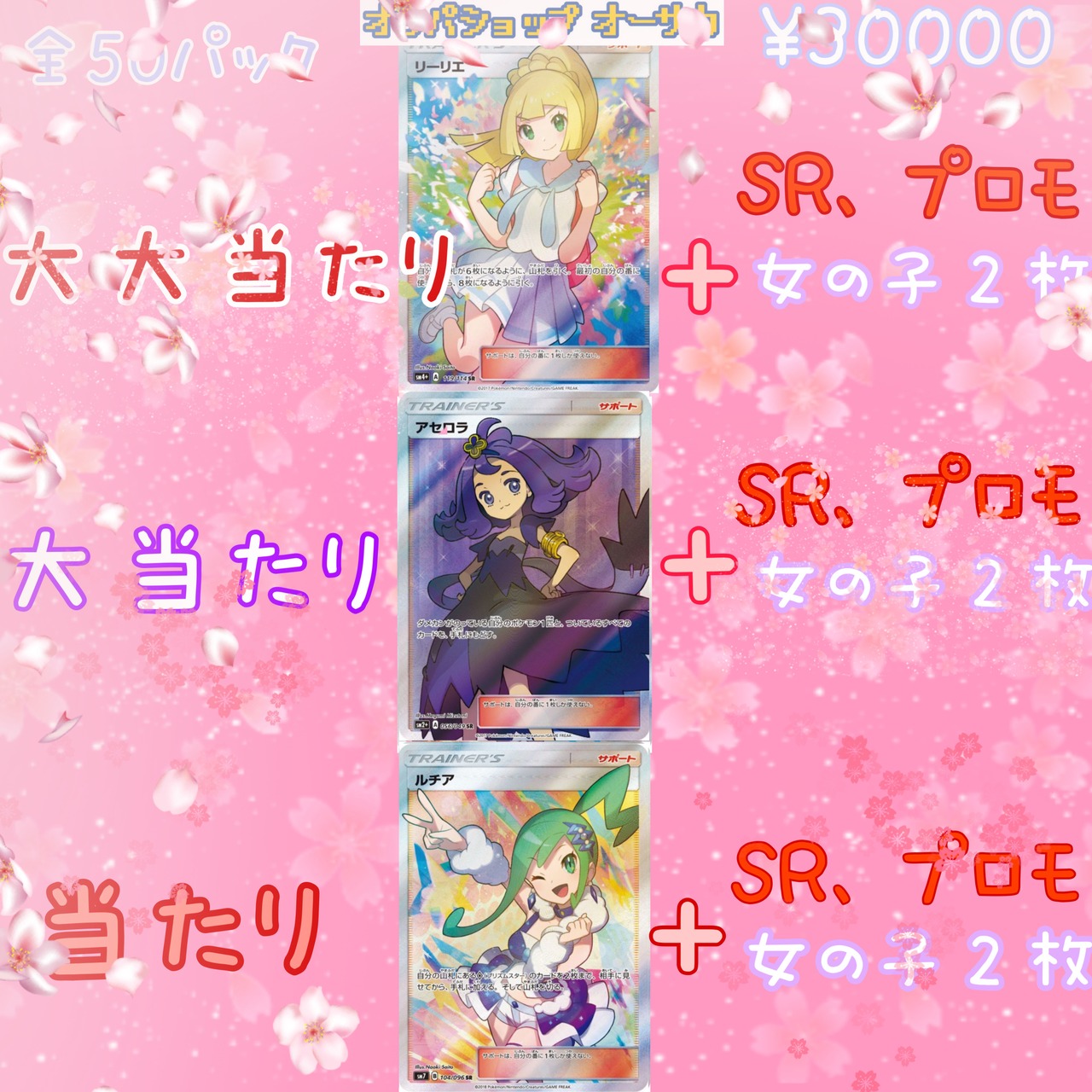 【大大あたり】1口 画像のリーリエ+女の子SR、又はプロモ 2枚